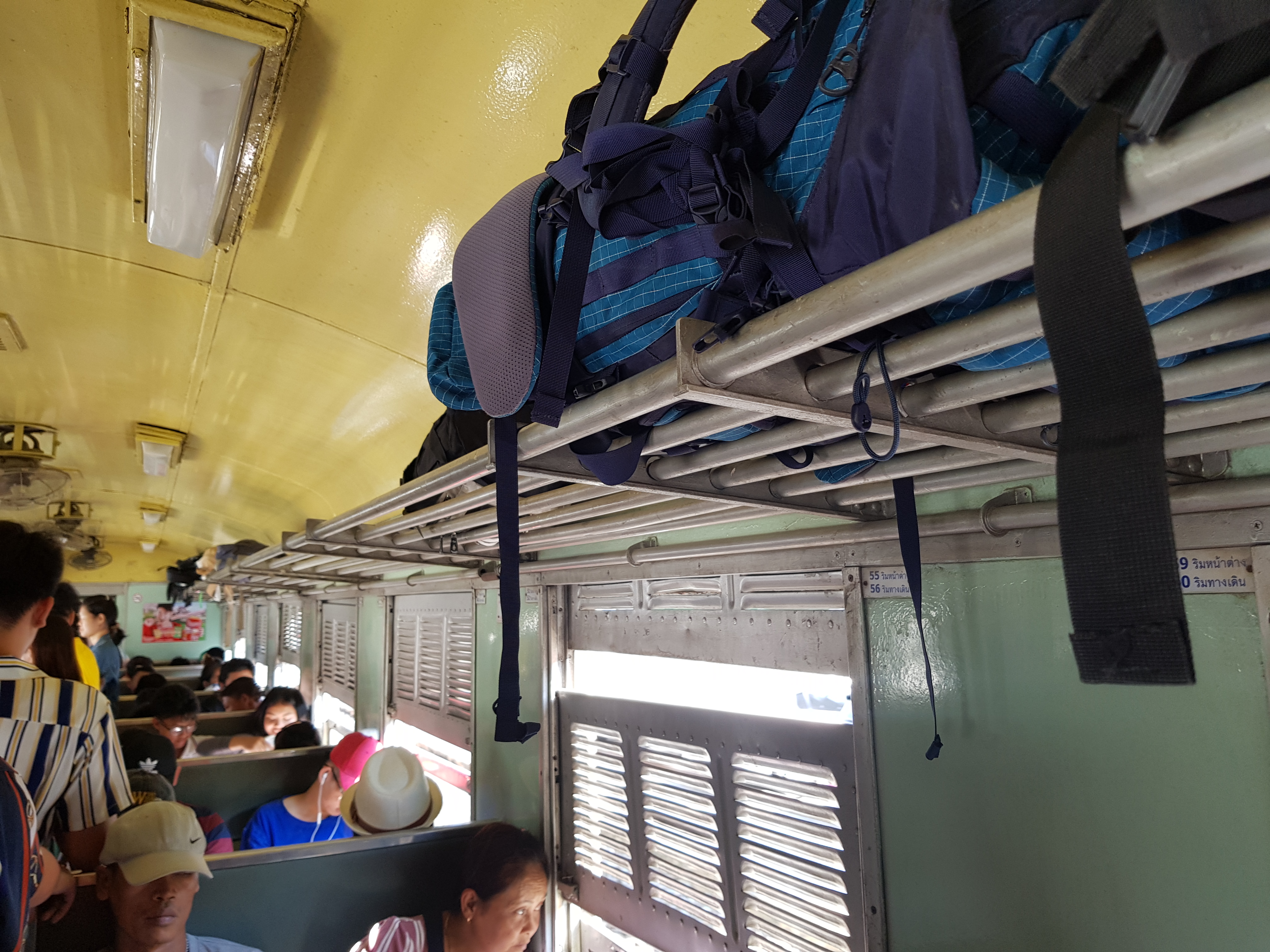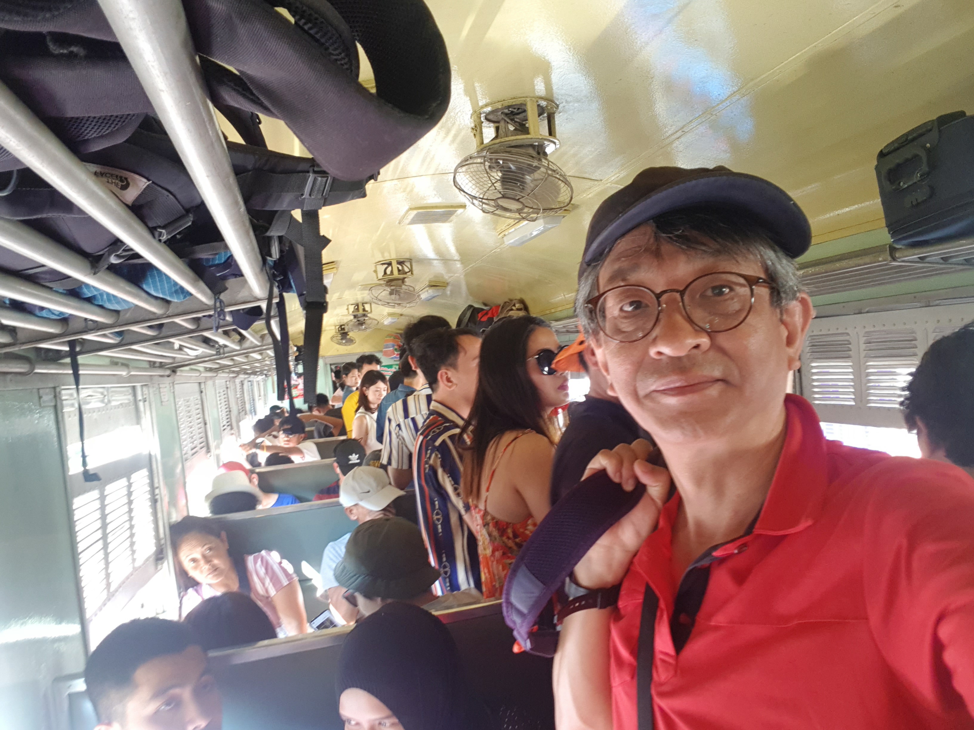 배낭은 선반에 올리고 현지인들과 살 맞대고 아유타야 가기.