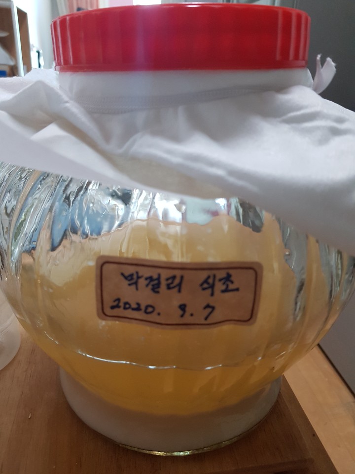 공기가 통하도록 면포로 덮고 마개는 그냥 살짝 얹어두었다.
